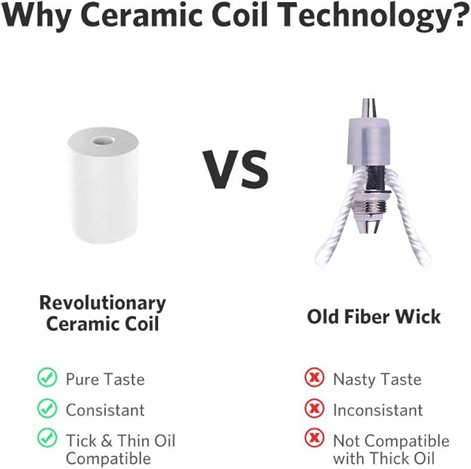 Innovative Creation - The ceramic coil technology takes vaping to higher level with unprecedented pure and intense vapor production for both normal e-liquid and CBD hemp oil.