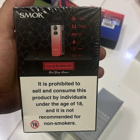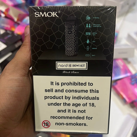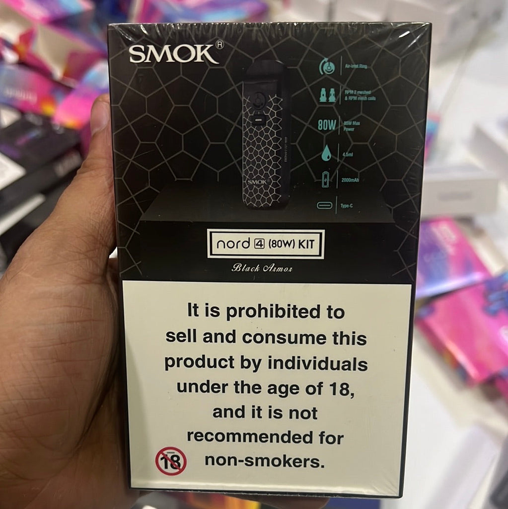 Check out the SMOK nord 4 80W Pod Kit, featuring a 2000mAh battery, 5-80W output range, and two proprietary pods for the RPM & RPM 2 Coil Series. Constructed from durable zinc-alloy, the chassis of the nord 4 pod kit features dual airflow adjustment dials to grant the user precise control over the airflow entering the coil. Offering a 5-80W output range, the SMOK nord 4 pod kit can deliver satisfying vapor from the RPM or RPM 2 Coil Series when used in the respective pod. Holding up to 4.5mL of e-juice or nicotine salt, the SMOK nord 4 delivers delectable flavors and vapor at the press of the intuitive firing button and features two adjustment buttons at the bottom of the side mounted screen.